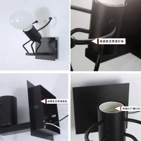 ă€DESIGN CRĂ©ATIF】:CrĂ©ative Little Iron Man Wall Light La lampe murale montre diffĂ©rents styles artistiques avec l’installation de diffĂ©rents styles d’ampoules. La combinaison de la simplicitĂ© moderne et du rĂ©tro industriel vous apporte un impact visuel et amusant.