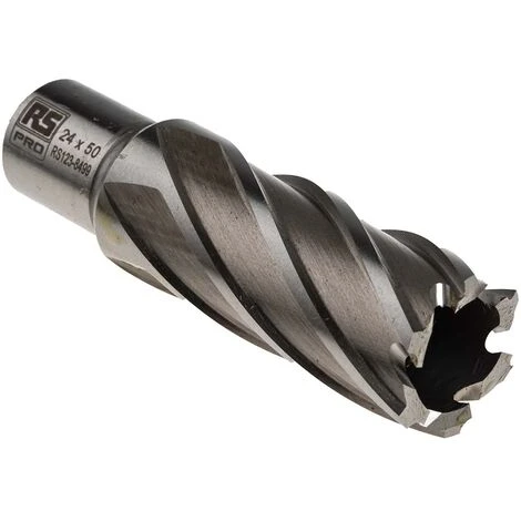 Outils de coupe HSS standard de RS Pro. Ces outils de coupe standard HSS de RS Pro sont des outils de coupe de trous utilisés sur les tuyauteries, les tubes ou les matériaux qui nécessitent une coupe de trou à finition fine. Ces outils de coupe optimisent la géométrie du bord de coupe pour une meilleure performance de coupe et des forces de coupe réduites. Les outils de coupe HSS de RS Pro produisent une pièce solide de matériau qui est éjectée quand l’outil transperce et que le trou est terminé. Les outils de coupe HSS sont plus rapides, plus faciles et plus précis que les forets hélicoïdaux ou les forets de perçage classiques. Caractéristiques et avantages. Capacités de coupe d’orifice précise, symétrique, à finition fine Friction réduite entre le foret HSS et le matériau Economies de temps et d’énergie. Options. Profondeur de coupe M2 25 mm (fraise courte) Profondeur de coupe M2 50 mm (fraise longue). Informations sur l’application. Les outils de coupe HSS standard de RS Pro sont le choix idéal pour toutes vos applications de perçage et de coupe magnétiques. Conçus pour une utilisation dans les secteurs de la fabrication, de la construction, des chemins de fer, de la pétrochimie et pour toute autre application de perçage de métaux ferreux