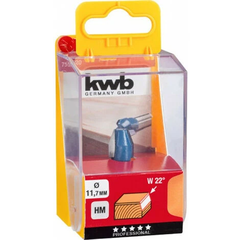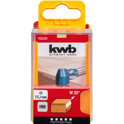 - La Fraise à Chanfreiner en Carbure 11,7x8mm KWB est conçue pour offrir des finitions précises et durables sur le bois. Parfaite pour les défonceuses, affleureuses et toupies, elle est un outil indispensable pour les professionnels et les passionnés de bricolage.