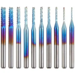 - Lot de 10 fraises de différentes tailles (0.8mm à 3.175mm), idéal pour une variété de travaux de gravure et de fraisage.