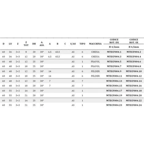Fraises bordeuses pour rectification à hélice en diamant avec plaquette H4,5 mm, angle axial de coupe 30° et rainures antibruit.