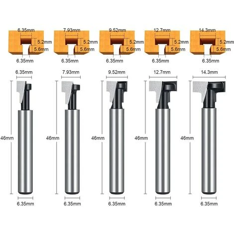 INCLURE LA LISTE Contenu de la livraison: 1 x fraise rainure en T pour vis hexagonales 1/2 « ; 1 x fraise rainure en T pour vis hexagonales 3/8 »; 1 x fraise rainure en T pour vis hexagonales de 5/16 .