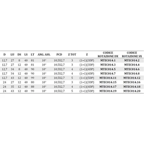 Fraise en diamant Z1+1 avec roulement de butée, 3 divisions en hélice, première plaquette positive, plaquettes restantes négatives.