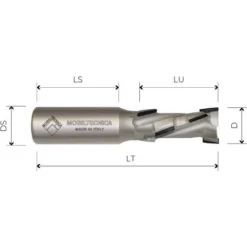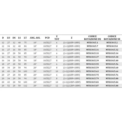 Fraise en diamant Z2+2, 4 divisions en hélice, première plaquette positive, plaquettes restantes négatives.