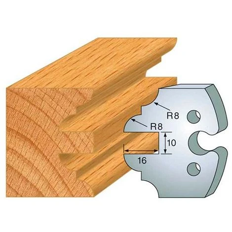 - Jeu de 2 fers profilés en acier HT de 50 mm, référence N°250, avec contre-profil double parement. Conçu pour une utilisation optimale avec les porte-outils de toupie.